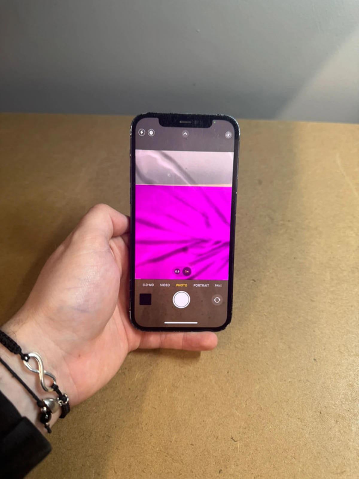 Cameras: Front working perfectly no issues, rear camera 1x has a purple box on it, 0.5x works fine